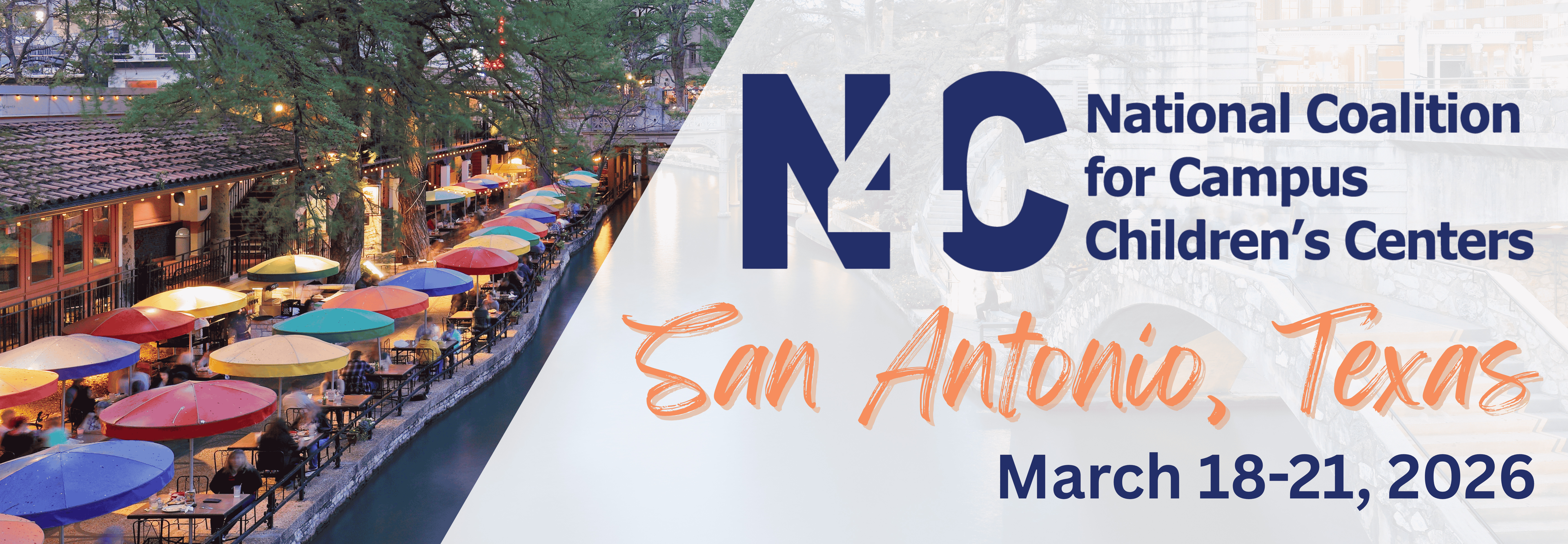 Join us for the 54th Annual Conference and Professional Institute of the National Coalition for Campus Children's Centers, held March 18 to 21, 2026 at the Hyatt Regency San Antonio Riverwalk! This event offers a unique opportunity for leaders from campus children's centers across the country to exchange insights, best practices, and innovative strategies aimed at meeting the changing needs of children, families, and the early childhood workforce within higher education.